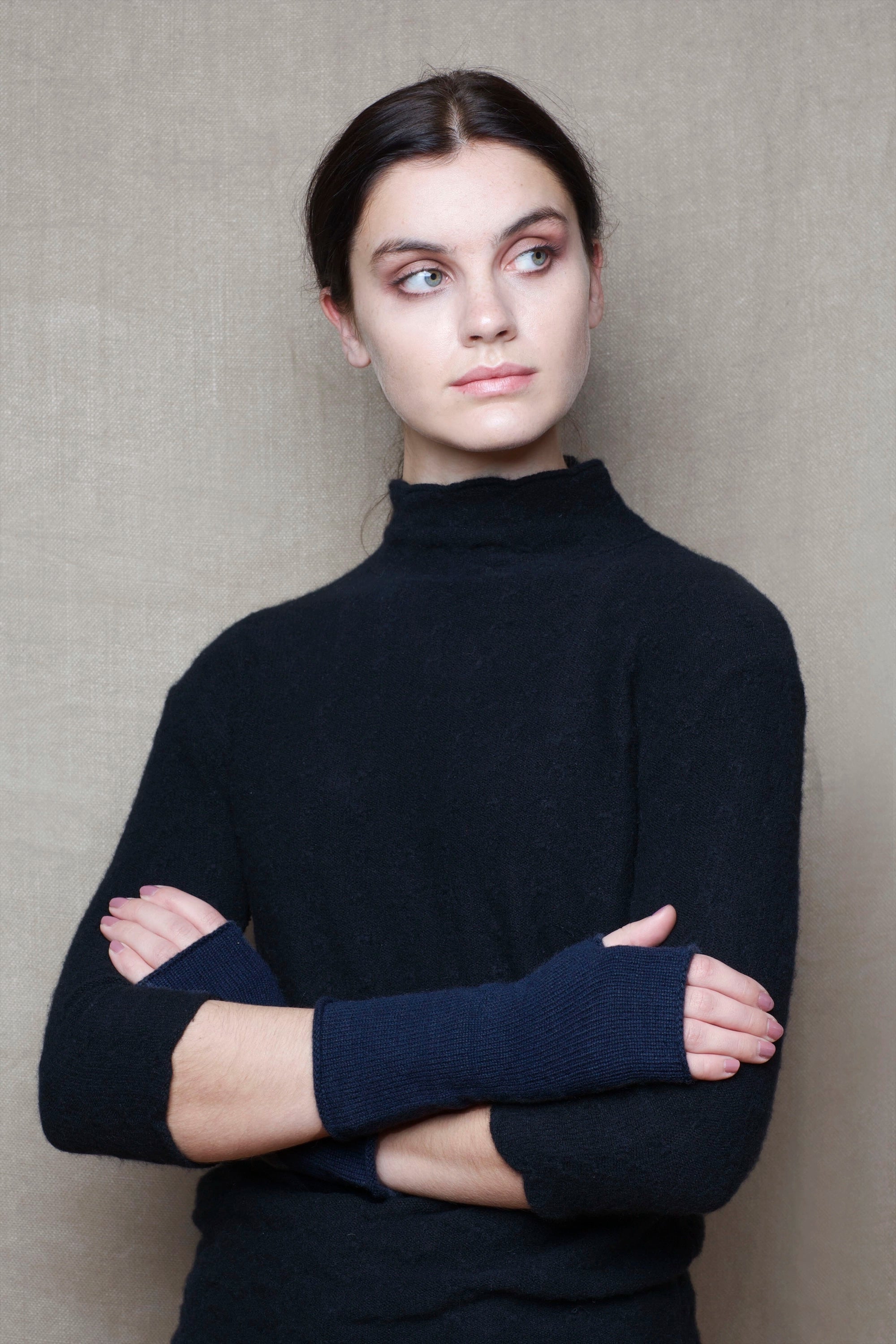 Gracie Cashmere Fingerless Gloves | Charcoal