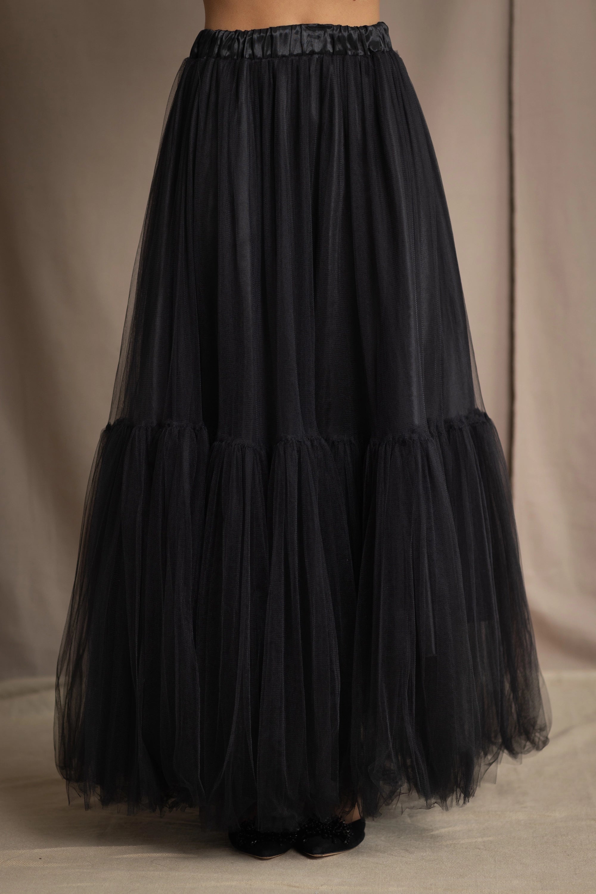 Designed for someone who values elegance and grace, the Tulle Skirt features layers of ethereal premium tulle fabric, cascading in soft tiers to create an effortless voluminous silhouette.