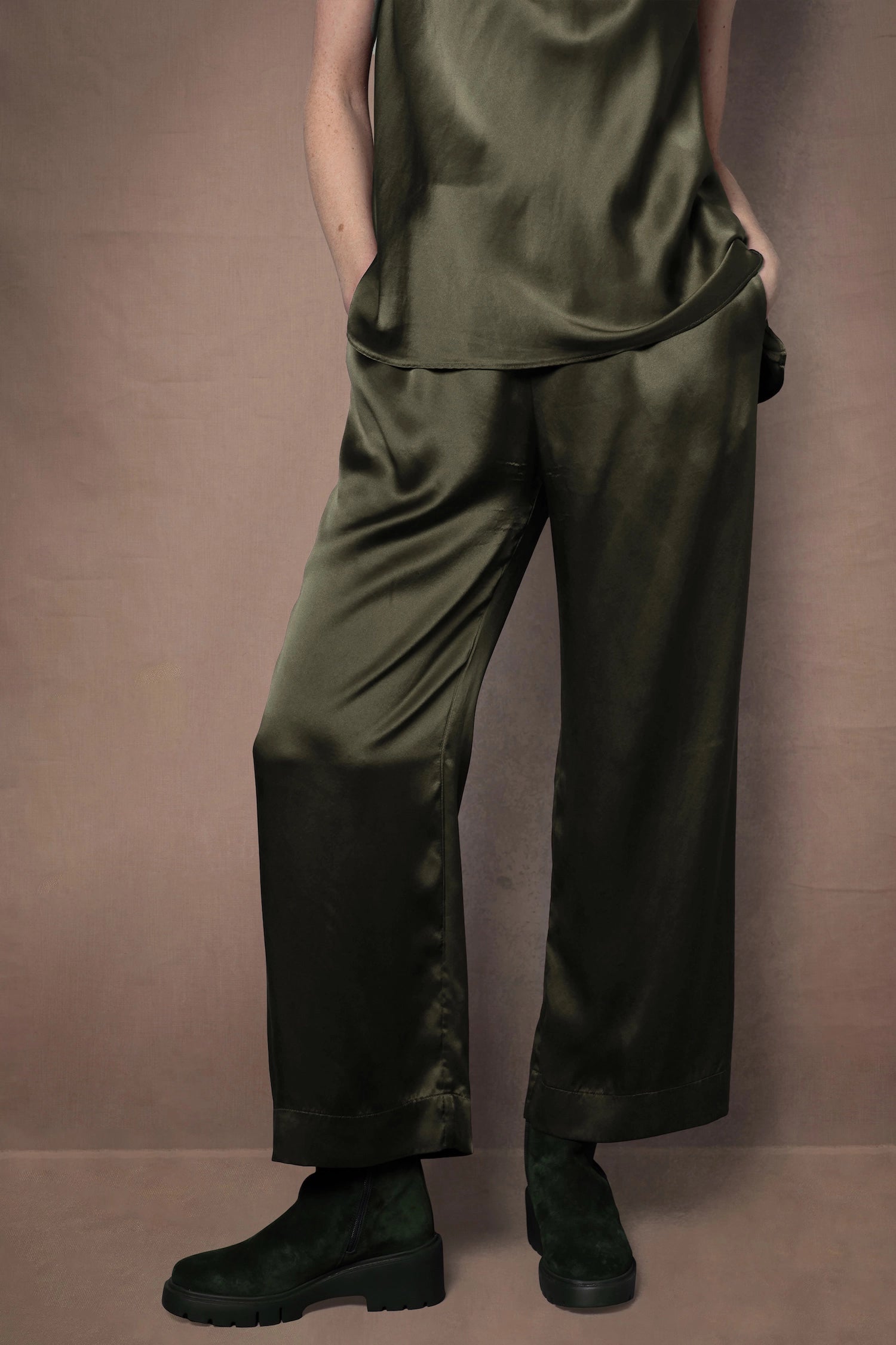 Síoda Silk Wide Leg Trouser | Dark Khaki