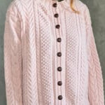 Cashmere Irish Aran Cardigan Sweater in Light Pink