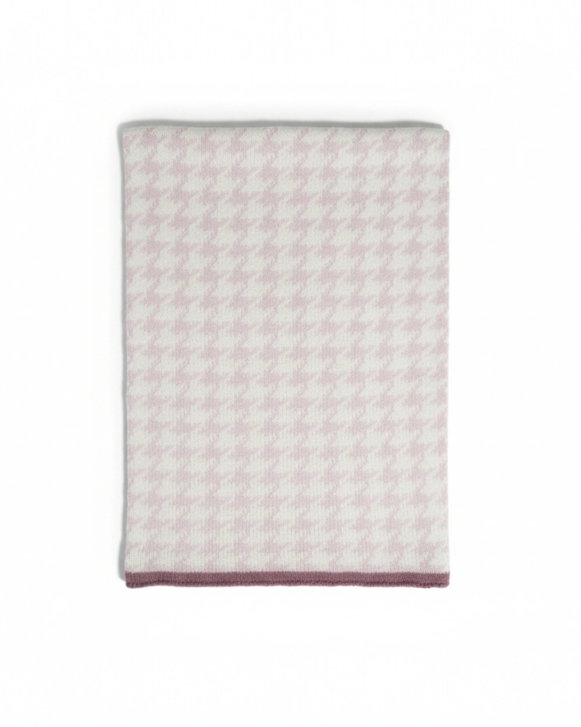 Houndstooth Cashmere Wrap | Cream & Pale Pink w/ Rose Trim