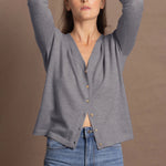 Lightweight Summer Cashmere Button Down V Neck Cardigan in Taupe