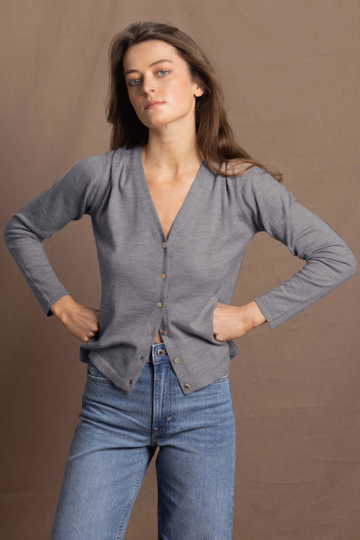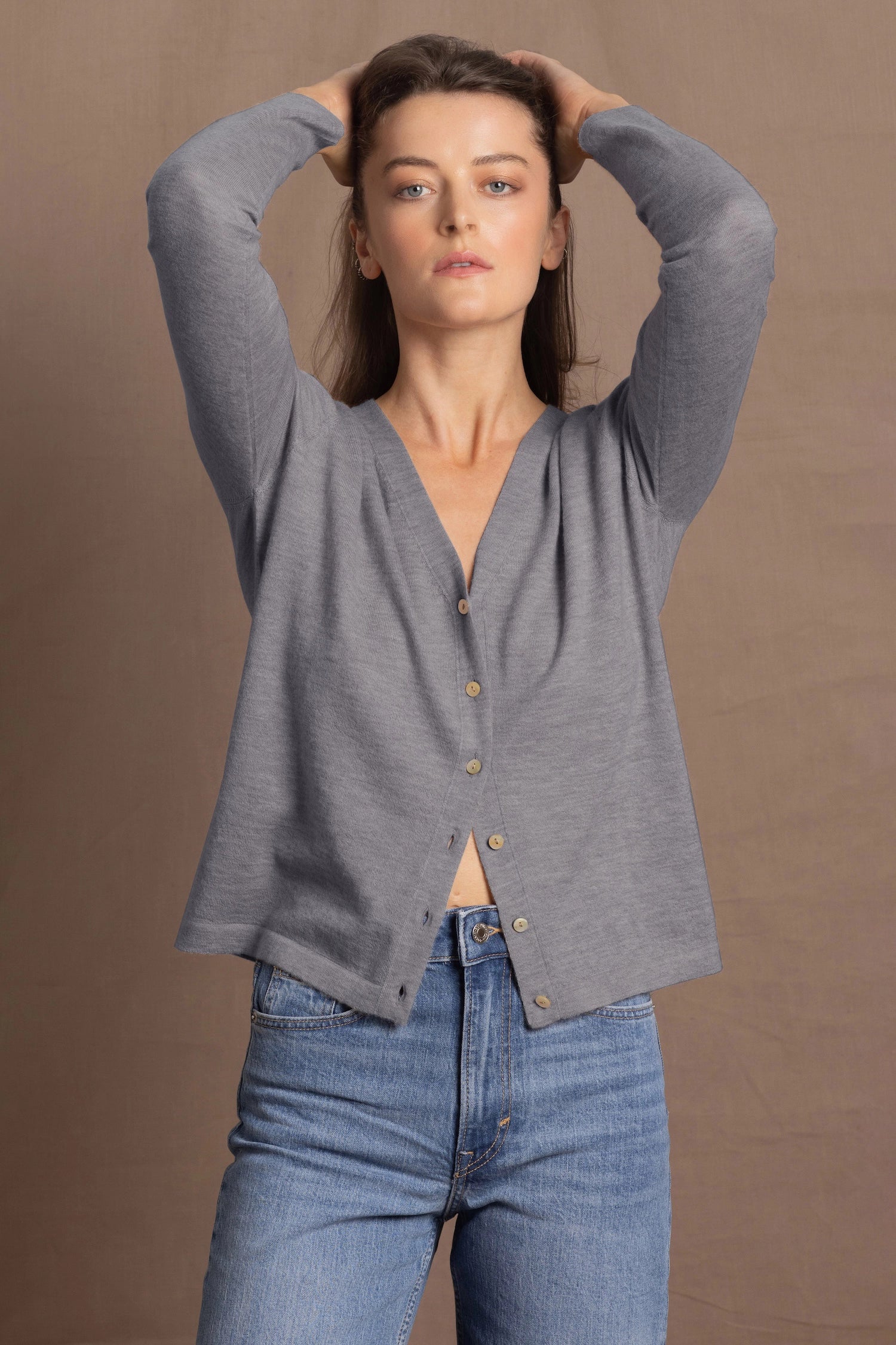 The Luna V Neck Cardigan embodies quiet luxury in its purest form. Crafted from our ultra-fine cashmere, it drapes effortlessly with a barely-there feel. Whether worn open or buttoned up, this timeless piece is a versatile essential for any wardrobe.