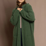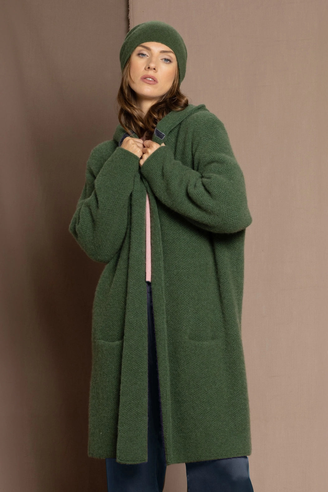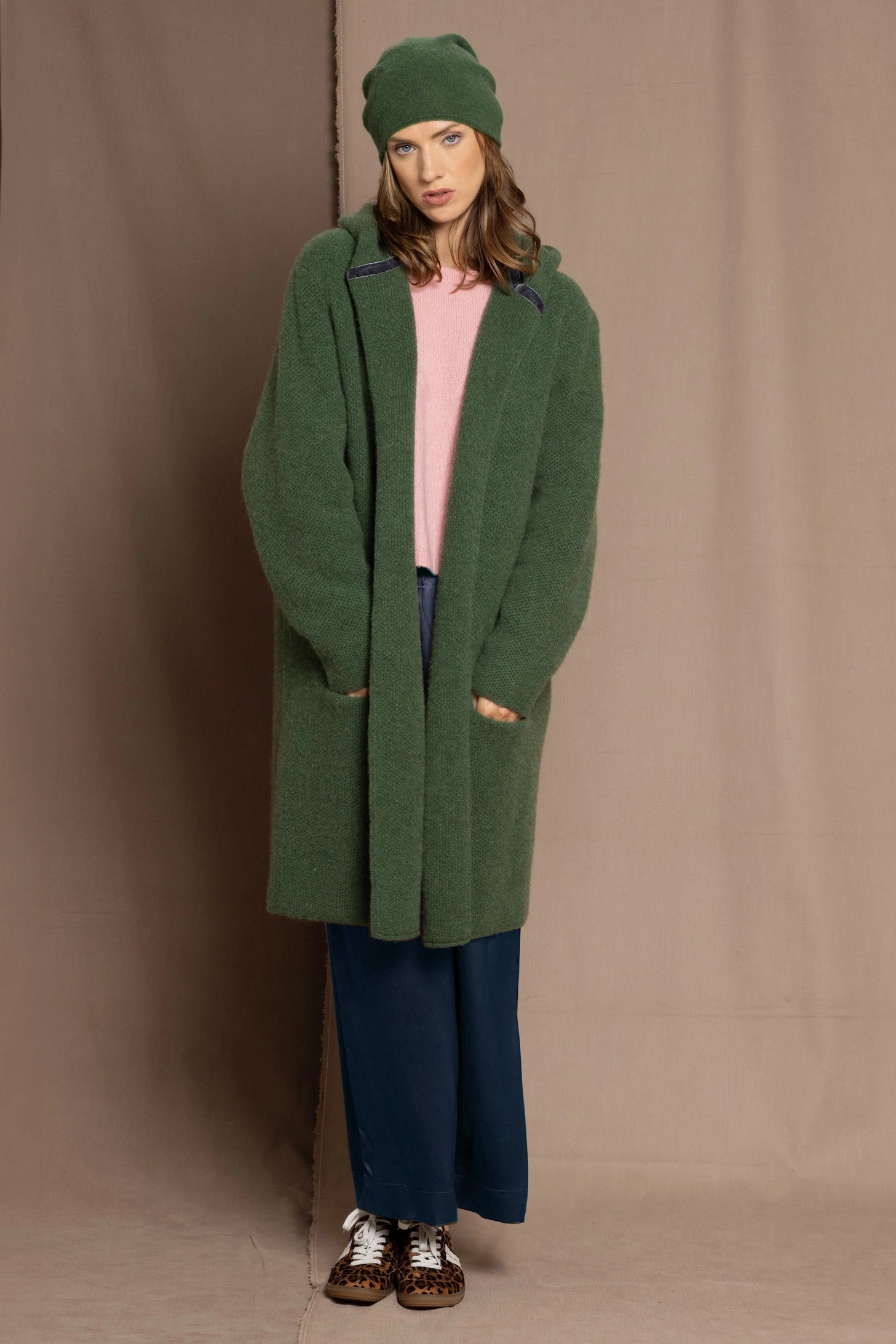 The Moss Hooded Cardi Coat is pure cashmere luxury. Made using a 4 ply 100% Cashmere yarn and incorporating a traditional Irish moss textured stitch, said to symbolise both abundance and growth. This heavyweight 'Coatigan' will be well lived in and passed on as an heirloom. The inset pockets, large hood and velvet finished seams add the finishing details of true luxury.