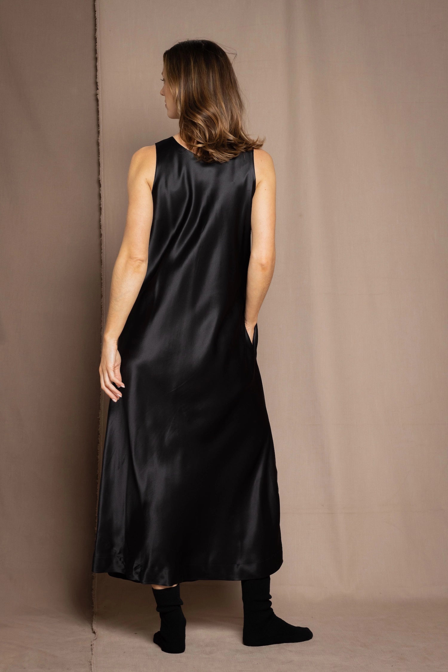 long silk dress in black