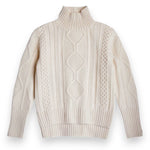 100% Cashmere Aran Sweater with Turtleneck in Cream