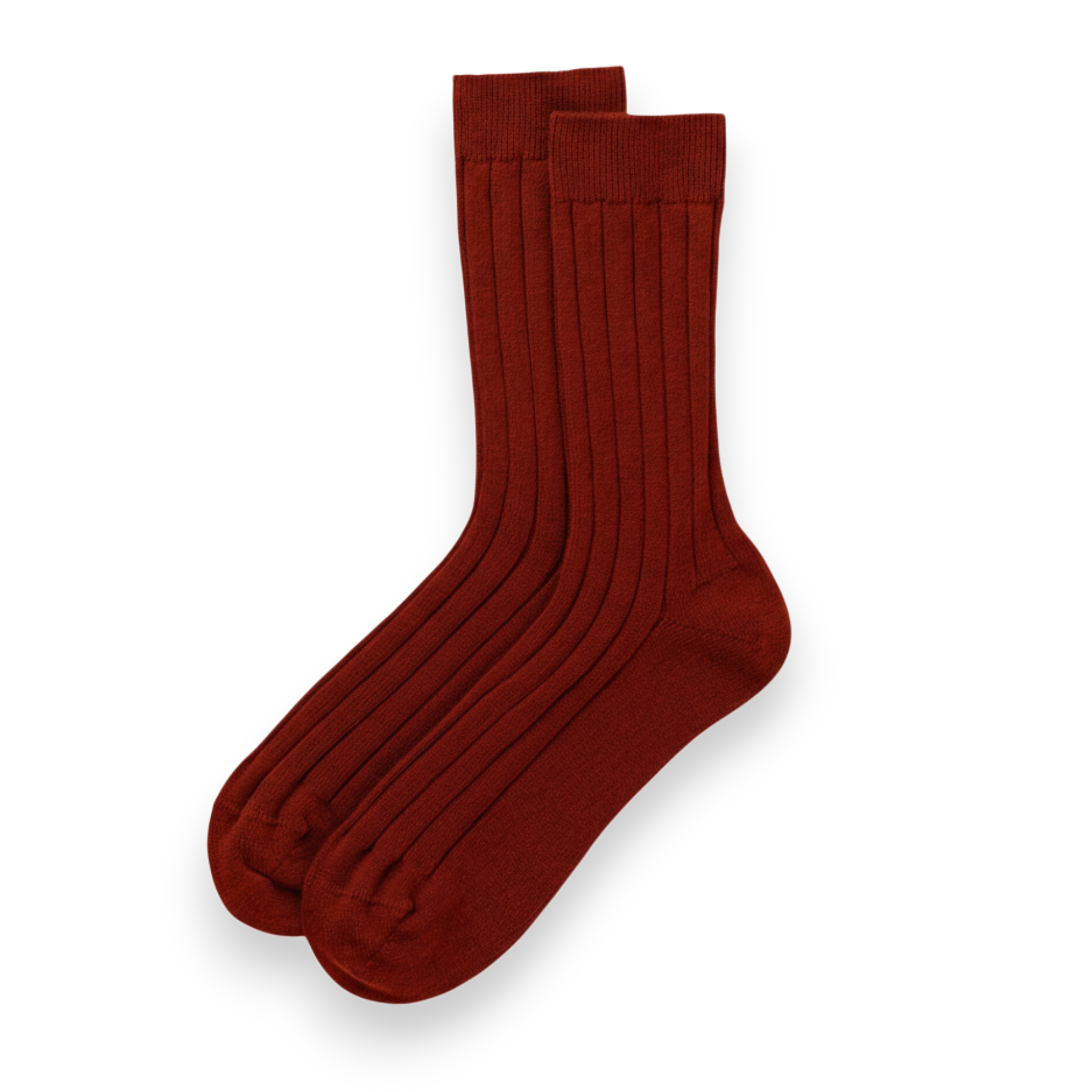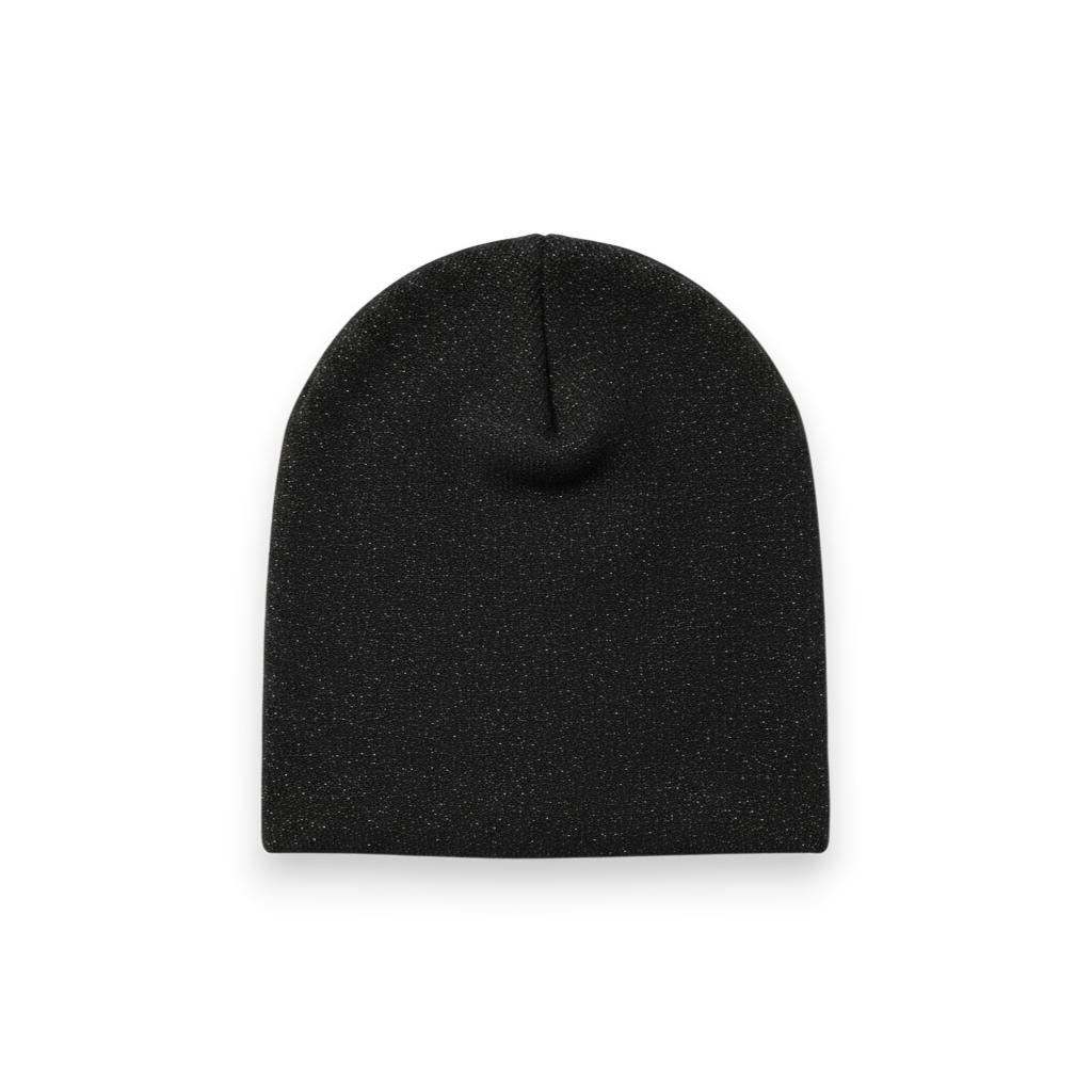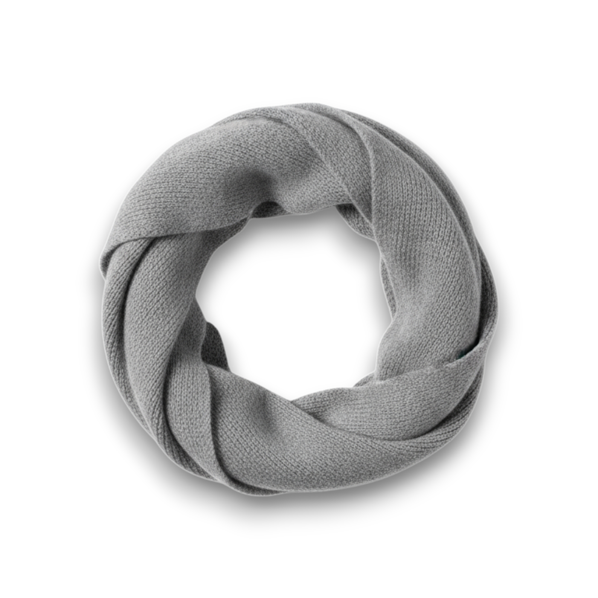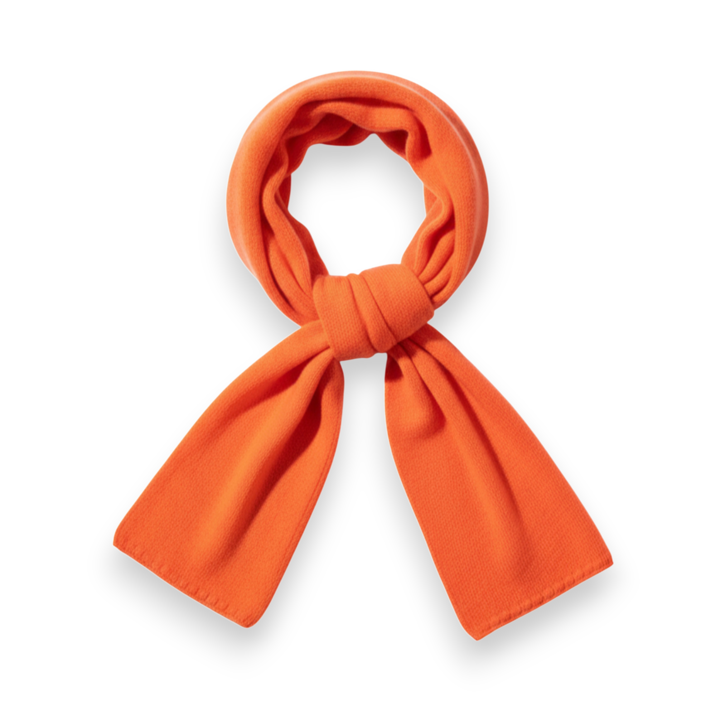 Woman wearing a long purple cashmere coat, bronze silk blouse and silk pants with dark purple cashmere beanie hat