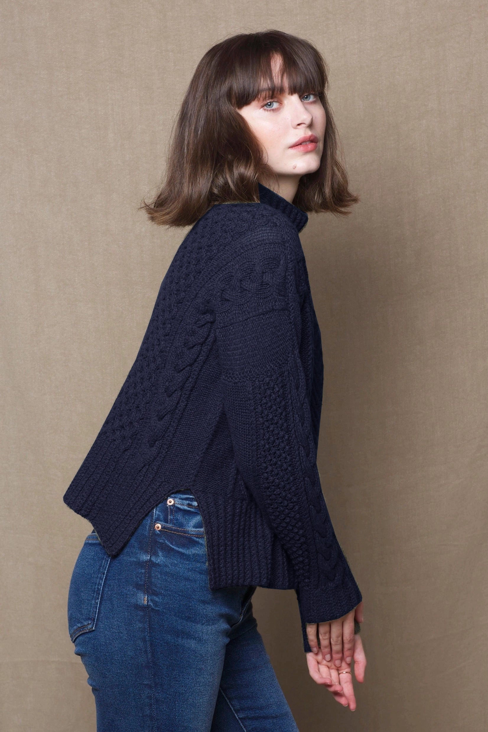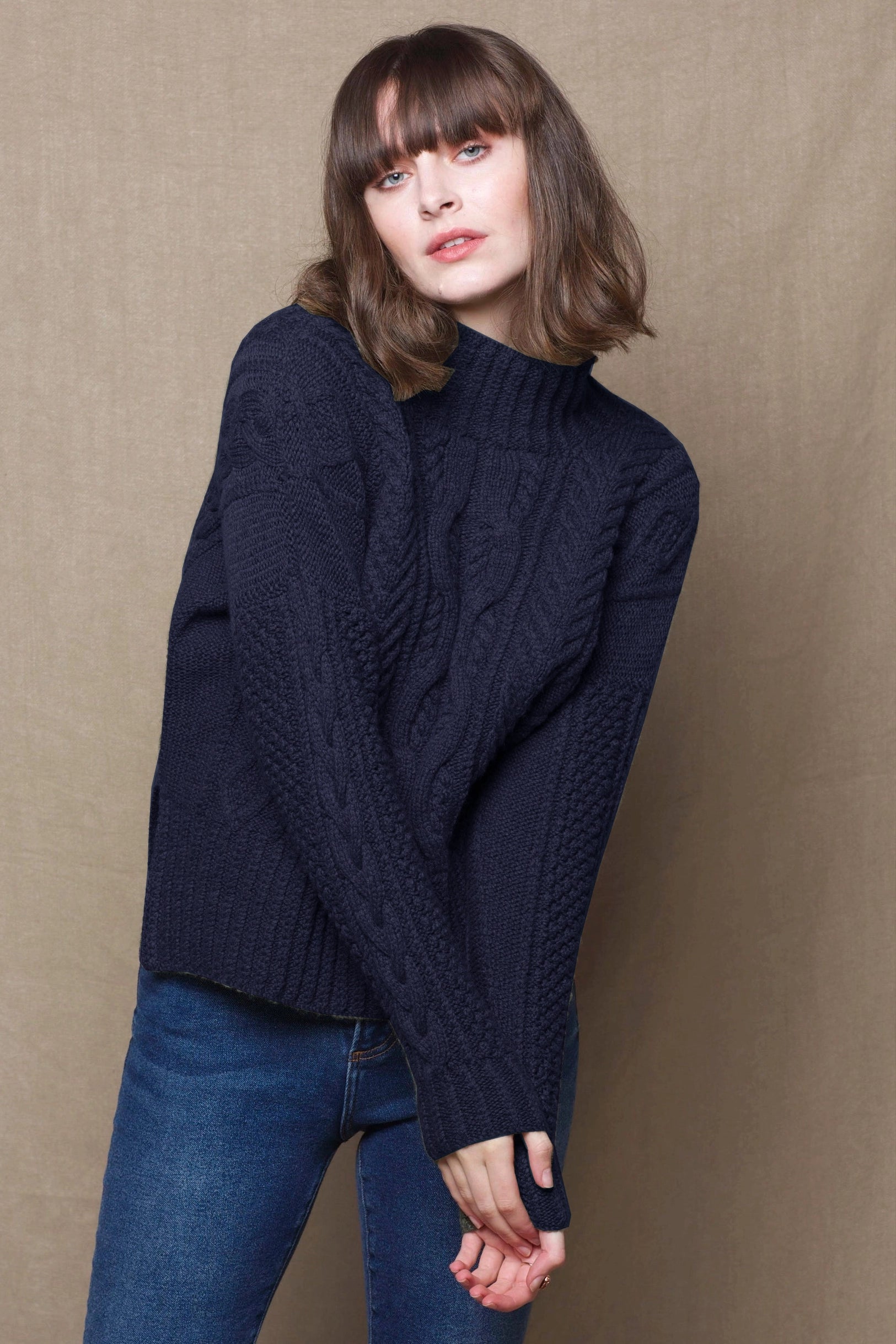 Saoirse Cashmere Aran Turtleneck Sweater | Navy