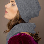 The Ada Cashmere Beanie Hat is the perfect cosy accessory for a chilly day. Wear the brim rolled up or unrolled for a slouchier fit and look. This pointelle knit is made with a fine knit pattern using a lace-like design in a geometric pattern. This makes this particular texture feel lightweight, airy and delicate, meaning it won't flatten your hairstyle.